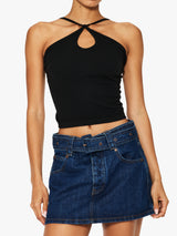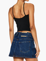 Superfine Merino wool seamless asymmetric tank with cut-out detailing. Offers mid compression in a single layer knit for a second-skin feel against the body. Made in Nagnata's signature Core line fabrication with two-tone rib structure the elliptic tank is intended as a versatile uniform piece with no external branding.