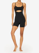 Superfine Merino wool seamless knit spliced bodysuit with cut-out detailing. Offers mid compression in a single layer knit for a second-skin feel against the body. This style features a keyhole detail and is made in the brand's signature premium
