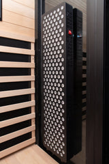 13 premium heating panels total — 5 advanced carbon FAR panels for even, consistent warmth, plus 8 halogen + quartz full-spectrum heaters