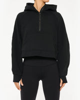 Serious about softness. This half-zip hooded sweatshirt is all about fleecy fabric and pairs perfectly with the brand's Scuba sweatpants.