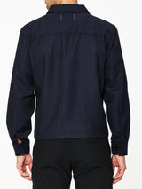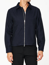 This collared zip jacket is crafted from an Italian wool twill with structured drape and a refined workwear feel. Featuring a standard fit with full-cut sleeves and torso, and a sleek cupro-lined interior. Designed with a YKK Excella two-way metal zip closure, corded welt pockets, reinforced shoulder yoke, adjustable cuffs, and a flat hem.