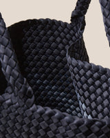 Graphic Ombre might just be Naghedi's most special weave yet: individual strips of neoprene are dip-dyed to the perfect shade, then woven by hand to create a gradient pattern in coordinating colors that is both elegant and unexpected.