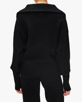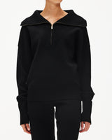 The Olly half-zip knit sweater with dropped shoulders and ribbed cuffs has a soft touch that provides you with lots of comfort throughout the day. The OLLY program is one of the brand's core programs. The program is made of a extremely soft viscose and polyamide blend, and the cozy look is perfect for when the sun begins to set or an afternoon walk. Pair it with any type of bottoms- your favorite pair of jeans, the Luna high-waisted rib legging, or the Forest pintuck flare pants. The zipper gives you the possibility to have some extra warmth when you need it.