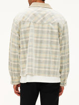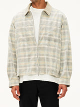 A refined take on classic workwear, the Cord Zip Flannel Shirt is crafted from a soft cotton corduroy check fabric with a structured yet relaxed feel. Designed in a boxy silhouette, it features a full zip front for easy layering and a chevron back yoke that adds subtle shape and detail. Finished with contrast corduroy at the collar and considered hardware throughout, this piece balances utility and elevated design.