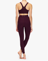 - Full coverage bra with extra support in Fig - Scooped T-bar back with printed arrow logo - Internal underbust elastic and removeable cups - Recycled soft peached with a brushed handfeel - Moisture wicking - Breathable, quick drying and extra soft"