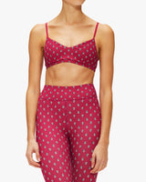 - Soft recycled ribbed fabrication printed in The Upside's Rasperry Paisley print