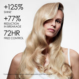 Formulated with patented OLAPLEX Bond Building Technology™, Sunflower, Moringa, Pomegranate, and Green Tea & Grape Seed Oils, this highly concentrated, yet super lightweight reparative hair styling oil delivers shine, reduces breakage, controls frizz for up to 72 hours and imparts silky softness while protecting hair from heat up to 450°F/232°C.