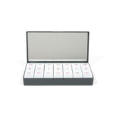 Minimalist and modern, the brand's pill boxes feature a clean design that includes a soft-touch matte finish outside and a mirror on the inside. Each compartment includes two interior wells with subtly sloped front walls to help easily remove your pills and flexible, removable lids for easy cleaning.