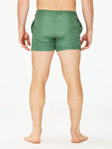 The swim shorts inspired by the model worn around the Mediterranean in the early 80s. Revisited with nordic line patterns. Upgraded in an Italian recycled, light-weight and quick-drying polyester. Offering UV and chlorine protection. Breathable micro-mesh lining. Tailored fit, short legs and side slits for an enhanced silhouette. Elastic waistband with adjustable drawstrings. Side pockets and interior key pocket. Featuring the double black-lacquered RD signature eyelets on the side.