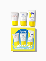 A travel-ready kit featuring SPF essentials everyone's obsessed with: cult fave glowy SPF, iconic 100% invisible SPF & original feel-good lotion