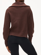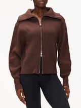 mid-gauge in soft viscose yarn; all-over rib stitch with fashioned armhole trimsl zip-through with double ended zip and fold-back collarComposition