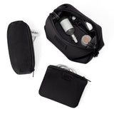 With this Hunter Toiletry Bag in onyx, you can keep your grooming essentials perfectly organized. In addition to a removable zippered interior pouch for your toothbrush, contact lens case or comb, the larger iteration is complete with a side slip pocket and detachable air mesh brush pouch. Elastic loops cradle items like lip balm, razors or travel fragrance, and the extra volume inside provides enough space to easily contain TSA-sized moisturizers, shampoo and shower gel.