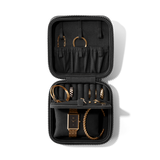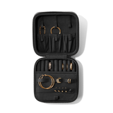 For those times when you travel and don’t want to leave your shine behind. Meet the Large Frankie Jewelry Case in Dark Moss. With a soft, microfiber-lined interior featuring smartly designed loops, straps, and slots, this zippered jewelry travel case keeps your favorite pieces in place, protected, and artfully organized. Lightweight and light on the planet, this eco-friendlier travel jewelry organizer is made with Repreve® recycled polyester created by repurposing 2 plastic water bottles. Features a luxe yet low-key shine. Loves going places, but also feels right at home on your dresser.