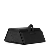 Some moments call for cat eyes, and others are for aviators. The Remi Glasses Case was made for bringing your shades and frames from here to there and back again. This foldable sunglasses travel case features a chic geometric silhouette with magnetic closure that stores up to 3 pairs securely. Skip the scratches with an ultra-soft microfiber lining and elastic straps to keep everything in place. This smartly designed eyeglass holder includes a convenient interior mesh pocket for little extras and a hook for hanging when it’s unfolded. Designed with eco-friendlier Repreve® materials featuring a luxe, subtle shine.